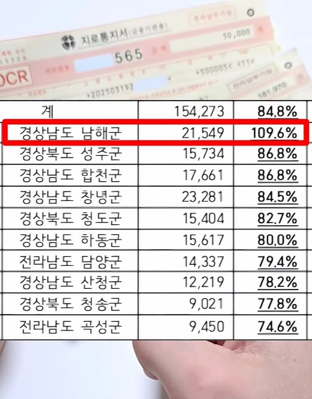 各地域別納付率のTop10で8地域が慶尚道